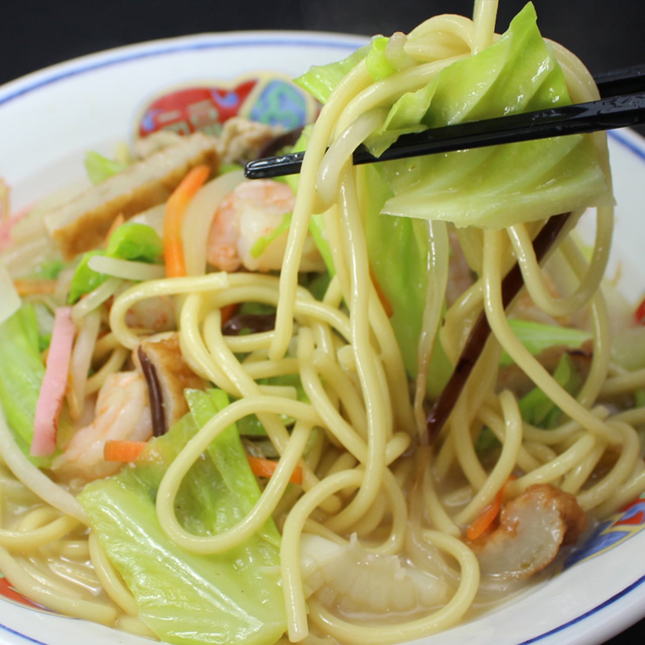麺は、極太のもちもち感にこだわった天草ちゃんぽん独特の食感で、スープとも絶妙に絡み、満足感をお届けします。
