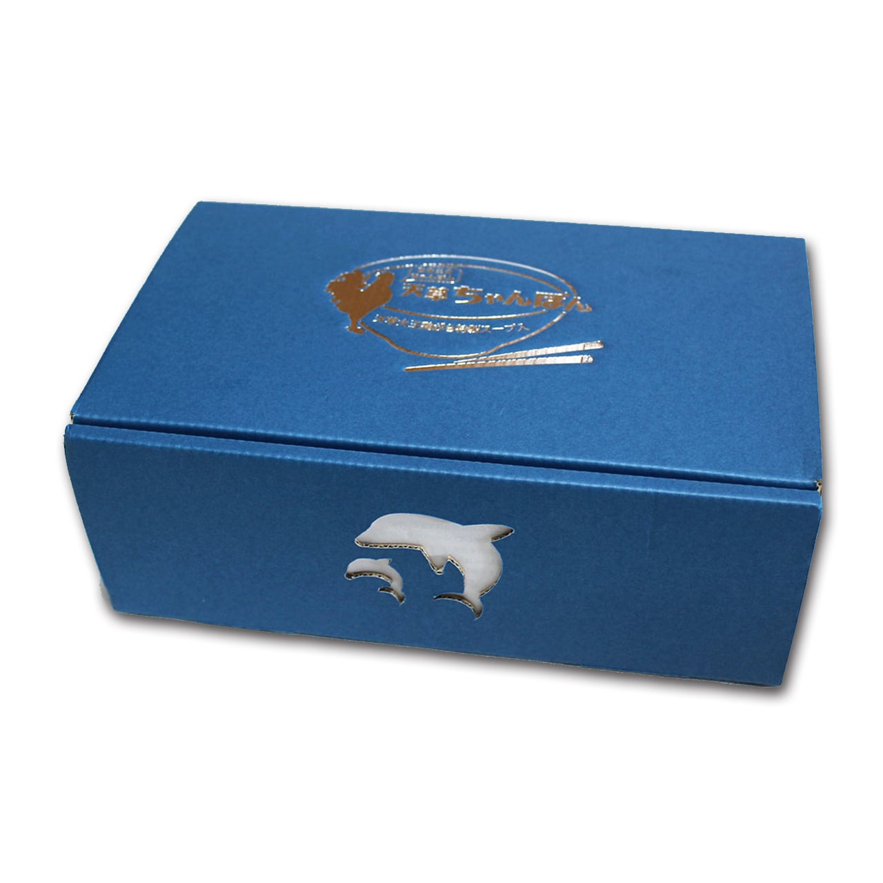 かわいい親子イルカの泳ぐギフトBOXに入った天草大王ちゃんぽん8食入り。