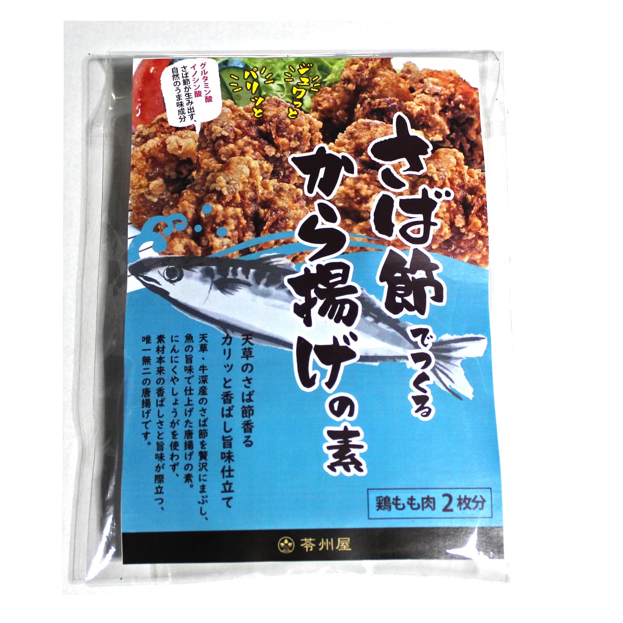 天草牛深産のさば節をたっぷりまぶして作る唐揚げの素。