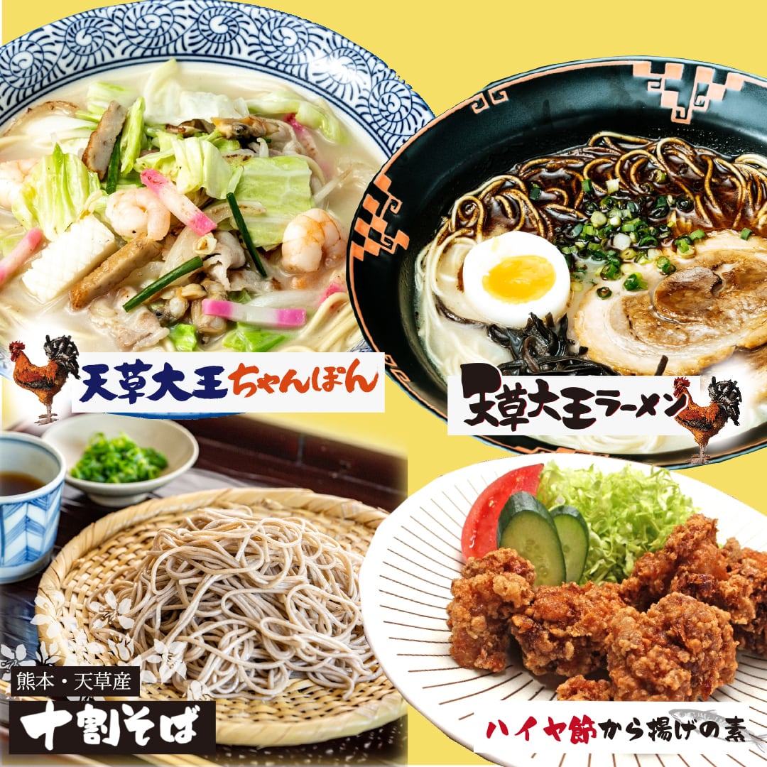 苓州屋まるごとセット(天草大王ラーメン・天草大王ちゃんぽん・ハイヤ節から揚げの素・十割そば)